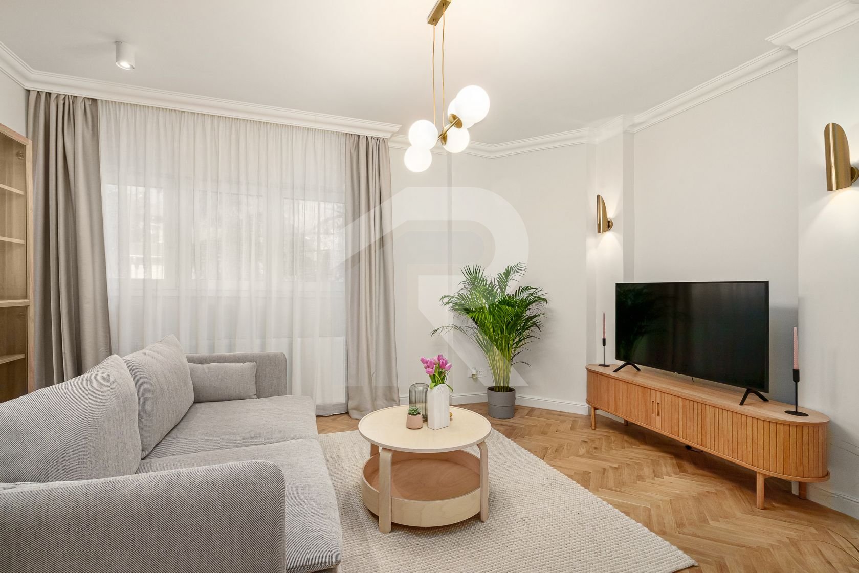 Livingul radiant te întâmpină cu o canapea confortabilă, o bibliotecă plină de povești, o măsuță de cafea cochetă și un TV smart, creând o atmosferă ideală pentru relaxare și distracție. Dormitorul matrimonial, dotat cu un pat dublu de 160 cm și un dulap generos pentru haine, îmbie la odihnă și confort. Dormitorul mic, încă nemobilat, oferă flexibilitate și poate fi personalizat în funcție de nevoile viitorului chiriaș.