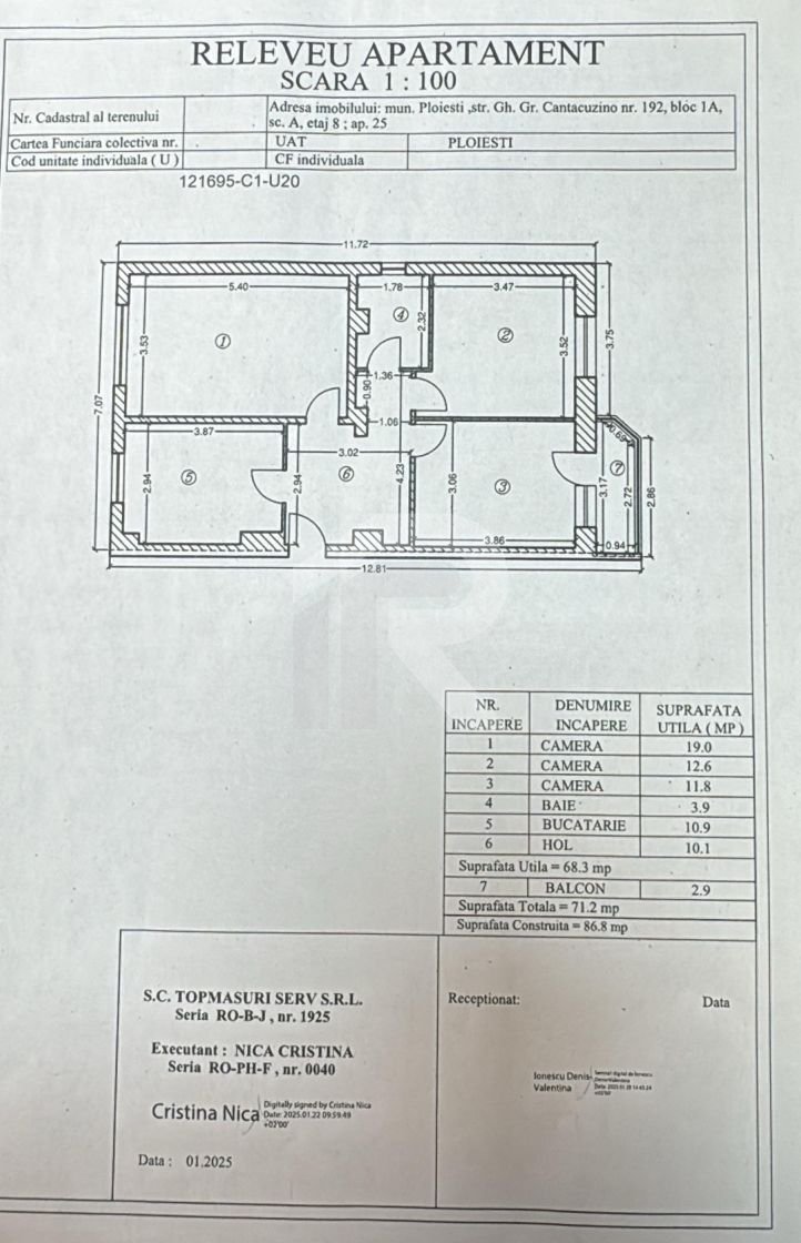 De vânzare apartament 3 camere confort 1A decomandat, etaj 8/8 fără probleme cu plafonul, (liftul urcă până la etajul 7), baie cu geam de aerisire ... situat în inima orașului Ploiești în zona Moș Crăciun pe Gh.Gr. Cantacuzino la nr 192, bloc 1A lângă clădirea Romgaz, bloc construcție finalizată 1990, suprafața utilă 69 mp+balcon 3 mp, apartament izolat termic exterior, acest apartament are o poziționare ideală , zona în care se află apartamentul este una liniștită, cu trafic moderat, ceea ce garantează un mediu de viață calm și plăcut.