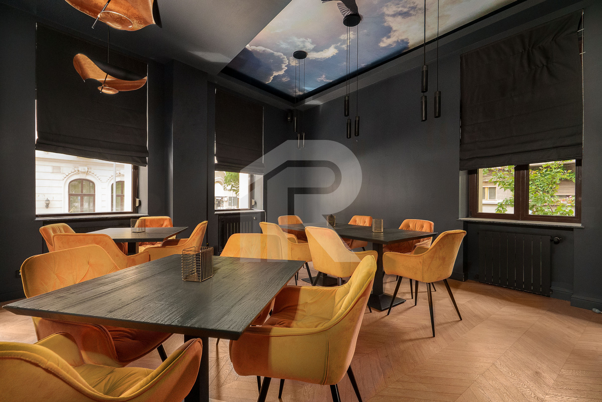 Situat la parterul unei case boierești autentice, acest spațiu elegant de 170 mp este pregătit să-și primească oaspeții. Complet mobilat și utilat, include: