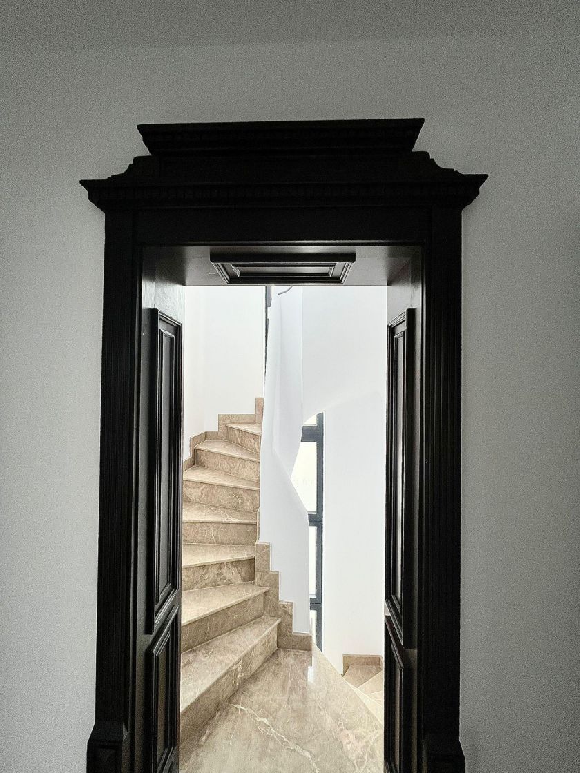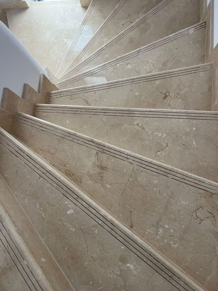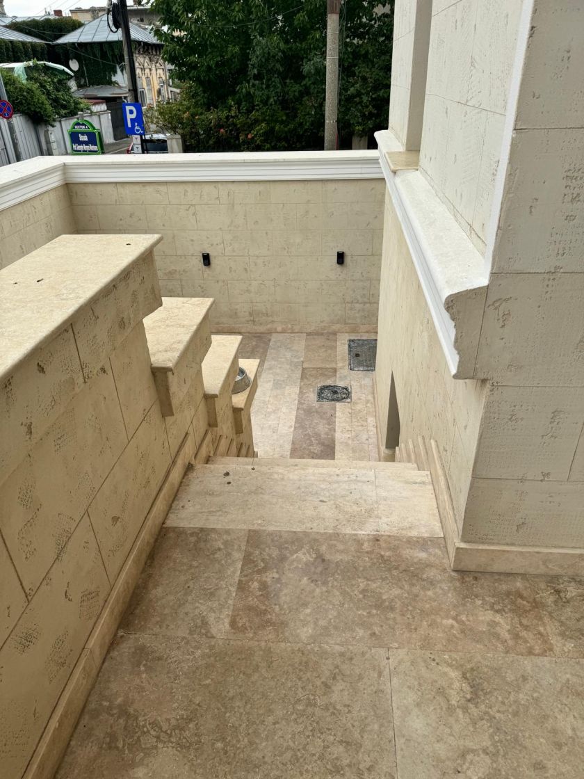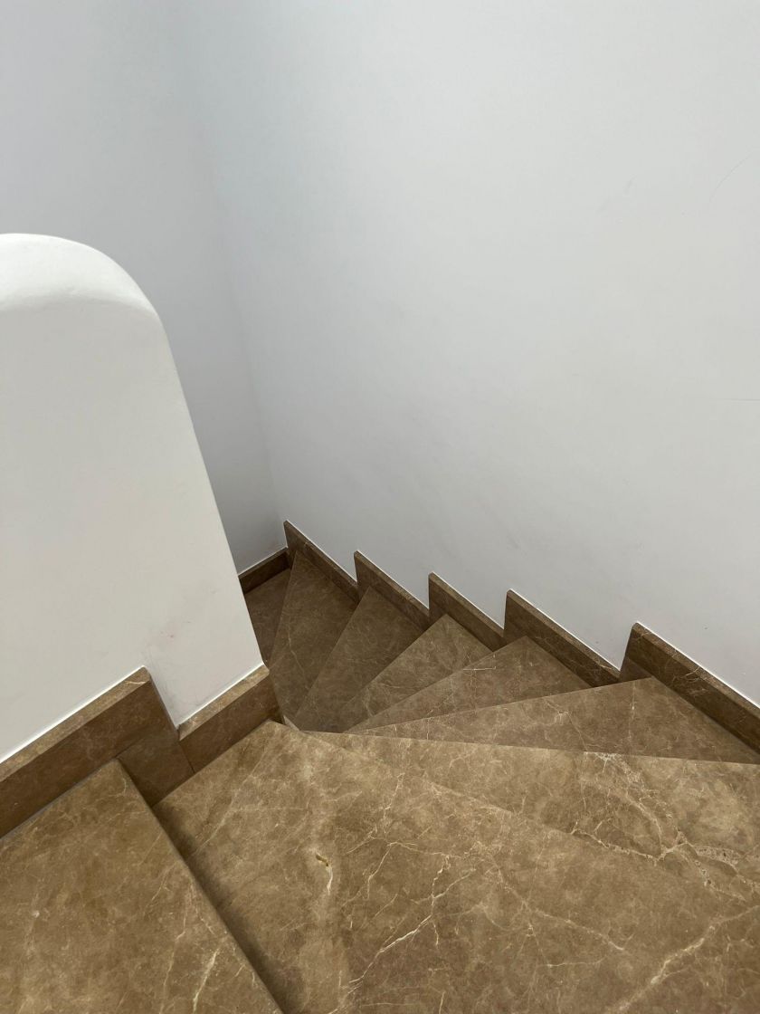 Trecerea la Etajul 1 se face pe 2 scari interioare prevazute cu marmura.