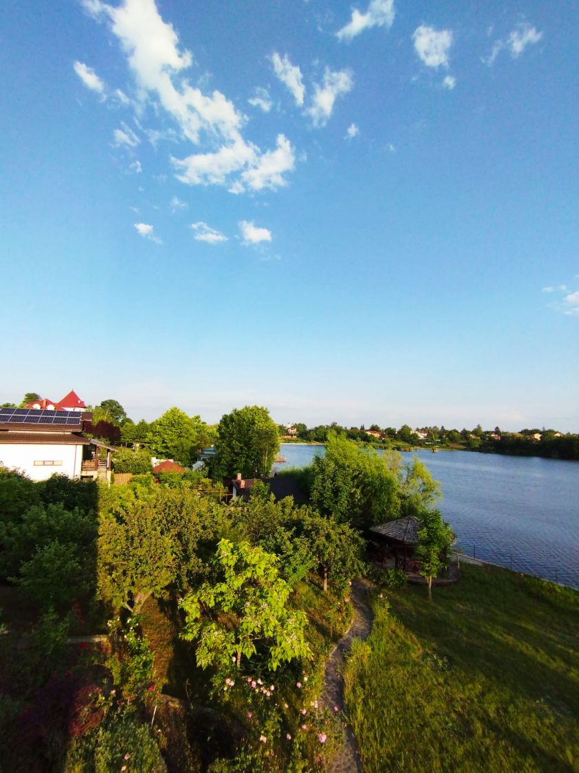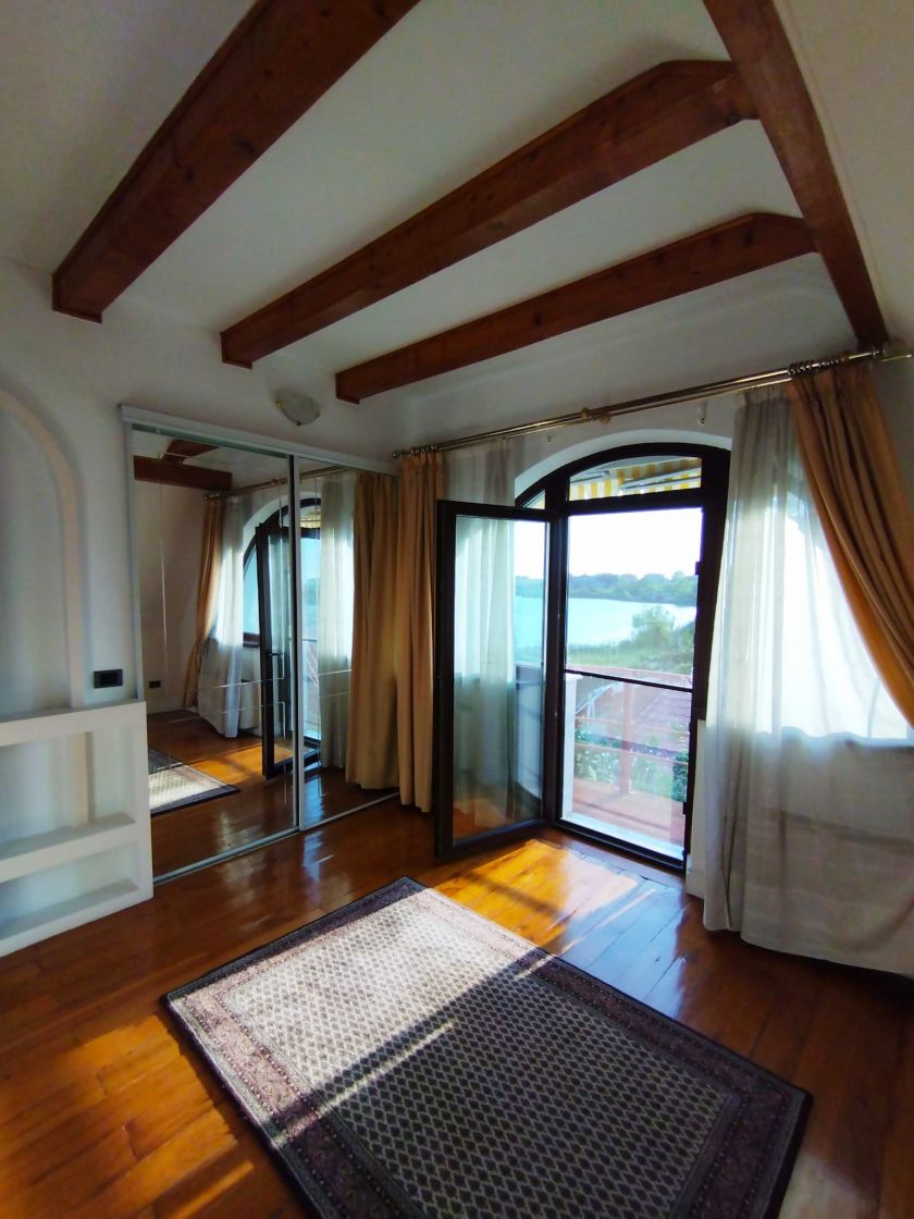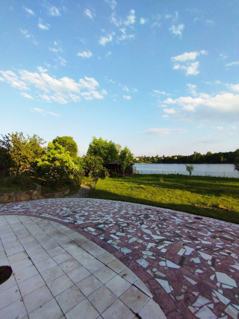 Proprietatea este situată in Balotesti, zona Parc, Judetul Ilfov, la distanță de cca 15 minute cu mașina de Aeroportul International Henry Coandă Bucuresti Otopeni, respectiv la mai putin de 10 minute de resortul “Therme International Bucuresti”. Terenul are suprafata de 2313 mp, cu o deschidere de 45 ml la malul lacului Cociovaliste. Valea Cociovalistea, situată in fluxul salbei de lacuri din Nordul Bucureștilor pana la Snagov, este o vale usor curgatoare si este alimentata cu apa atat din izvoarele proprii situate in lungul vaii, cat si din fluxul usor curgator ce vine din salba de lacuri din amonte, continuand spre Căciulati, Moara Vlasiei si pana in Lacul Snagov. Proprietatea din parcul "Martha Bibescu" este generoasa si armonios dezvoltata pe terenul situat la malul lacului: Corpul principal, vila propriuzisă, are trei nivele si cupride parter spre lac, un etaj spre lac si inca un etaj mansardat spre lac și strada. Vila fiind construita pe un teren in panta descendenta de la strada catre lac, cu o diferenta de nivel de cca 3,60 metri pe amprenta la sol a constructiei, se distinge printr-o imagine originala, astfel ca datorita acestei diferente de nivel pe panta care este construita, cladirea apare vizibila cu doua nivele privind dinspre strada si trei nivele privind dinspre lac (vezi foto). Amprenta corpului principal, vila propriu-zisă, are suprafata de 151 mp, la care se adauga garajul de 56 mp, alipit cu corpul principal. Suprafata totală edificata a vilei, pe cele 3 nivele plus garajul este de cca 550 mp, iar suprafata utilă locuibilă interioară desfăsurată pe cele trei nivele, conform releveelor cadastrale, este de 427 mp. Parterul, cu iesirea la lac, are in compunere urmatoarele incaperi: sufragerie, camera de zi, biblioteca, bucatarie, spalatorie, sauna cu baie si toaleta, hol de legatura intre incaperi si casa scarii, respectiv o cămară cu o suprafată generoasă (este construita din beton armat conform reglemetarilor de adapost antiatomic solicitate la aprobarea documentație pentru autorizația de construire, cu usa metalica dubla la la iesire directă spre garaj. Etajul 1 vazut dinspre lac, este conceput sub forma unui spatiu multifunctional deschis, care cuprinde holul de intrare de la usa principala dinspre strada, casa scarii, o toaleta de serviciu, bucatarie deschisa (stil California) ALNO, sufragerie familiala, terasa inchisa cu glass-wand, livingroom, family room cu cheminee (Valsechhi – Italia) functional, hol de comunicatie. Etajul 2, vazut dinspre lac este mansardat (respectiv etaj, privit dinspre strada) cuprinde acces din casa scarii, hol de comunicatie, dresing room, baie cu cabina de dus, bidee si toaleta, baie cu cada jacuzzi, consola din marmura neagra cu oglinda de cristal ariston, trei dormitoare si un birou larg. Toate cele patru camere si terasa cu vedere la stradă au balcoane. Finisajele interioare si dotarile sunt de categorie lux. Pardoselile sunt din marmura si granit de calitate superioara (parter marmura Alun Ruschita, etaj granit Maracana și marmura verde Guatemala), dusumelile din parchet sunt din lemn masiv esente exotice. Scara interioara este lucrata din lemn masiv de stejar, fasonat manual și lustruit, lucrare executata manual de catre artistul scarar Ioan Ifrim. In plafonul scarii este motat un candelabru Solzi Luci – Companie cu traditie de peste 150 de ani din Cremona, Italia – si este o piesa originala unicat executata in Italia in anii 1925, cristale originale montate pe structura de otel forjat si fasonat prin ciocanire, poleit cu foita de aur. Vitraliile montate in ferestrele de la scara interioara sunt o lucrare de arta de autor recunocut international, artistul plastic Eugen Moldovan, design unicat, executie manuala, cristale colorate in masa din sticlă fuzionată, cu valore de patrimoniu, precum si ferestrele dinspre stradă si dinspre terasa garajului, sunt executate in același atelier, din sticlă cristal, cu ornamente gravate in trei granulatii de sablare. Garajul este alipit de casa (suprafata utile 48 mp, totala 56 mp) si are 2 locuri de parcare pentru SUV. Din garaj este acces direct in casa. Pe proprietate mai sunt si alte construcții independente, separat de vila propriu-zisa: - casa de oaspeți cu bucătărie deschisă cu camera de zi/loc de luat masa, baie cu dus si toaletă, respectiv două dormitoare; - bucătărie de vară cu cămară si barbeque in fată; - magazie pentru unelte si accesorii de gradina, situată intre casa de oaspeti si bucătăria de vară. Amprenta acestor trei corpuri anexa este de peste 100 mp. Deasemenea, pe malul lacului este construit un chioșc (gazebo) care are suprafata de 16 mp, fiind cu iesire la lac pe o platforma betonata de 12 mp. Chioscul este construit din lemn pe o platforma de beton, in forma de hexagon cu latura de 2,4 m. Sistemul de încălzire pe gaze, complet automatizat, cu circuite independente pentru fiecare din cele trei nivele, respectiv casa de oaspeți. Apa potabilă provine de la rețeaua locală, iar instalatia de distributie este prevazuta cu un sistem de filtrare si sterilizare cu ultraviolete de mare capacitate. Imobilul este deservit de o instaltie solara sub presiune pentru prepararea apei calde menajera, cu boiler de 500 litri, sistem controlat de microprocessor (cost gaze din aprilie pana in octombrie inclusive: zero!). Sistemul de irigație spațiu verde si grădina automatizat cu alimentare din puțul propriu, adâncime 47 m, care in caz de necesitate se poate comuta si pe alimentarea pentru apa menajera/potabilă din același puț (folosit înainte de a se da in funcțiune rețeaua stradală de apa potabilă si canalizare). Fosa septica colectoare din subsolul tehnic este deservita de o pompa de evacuare automata, fiind cuplata la canalizarea comunală stradală printr-un bazin separator dotat cu supapa de siguranța "non-return". Alimentarea cu energie electrică este asigurata pe rețea trifazică, tabloul de distribuție f