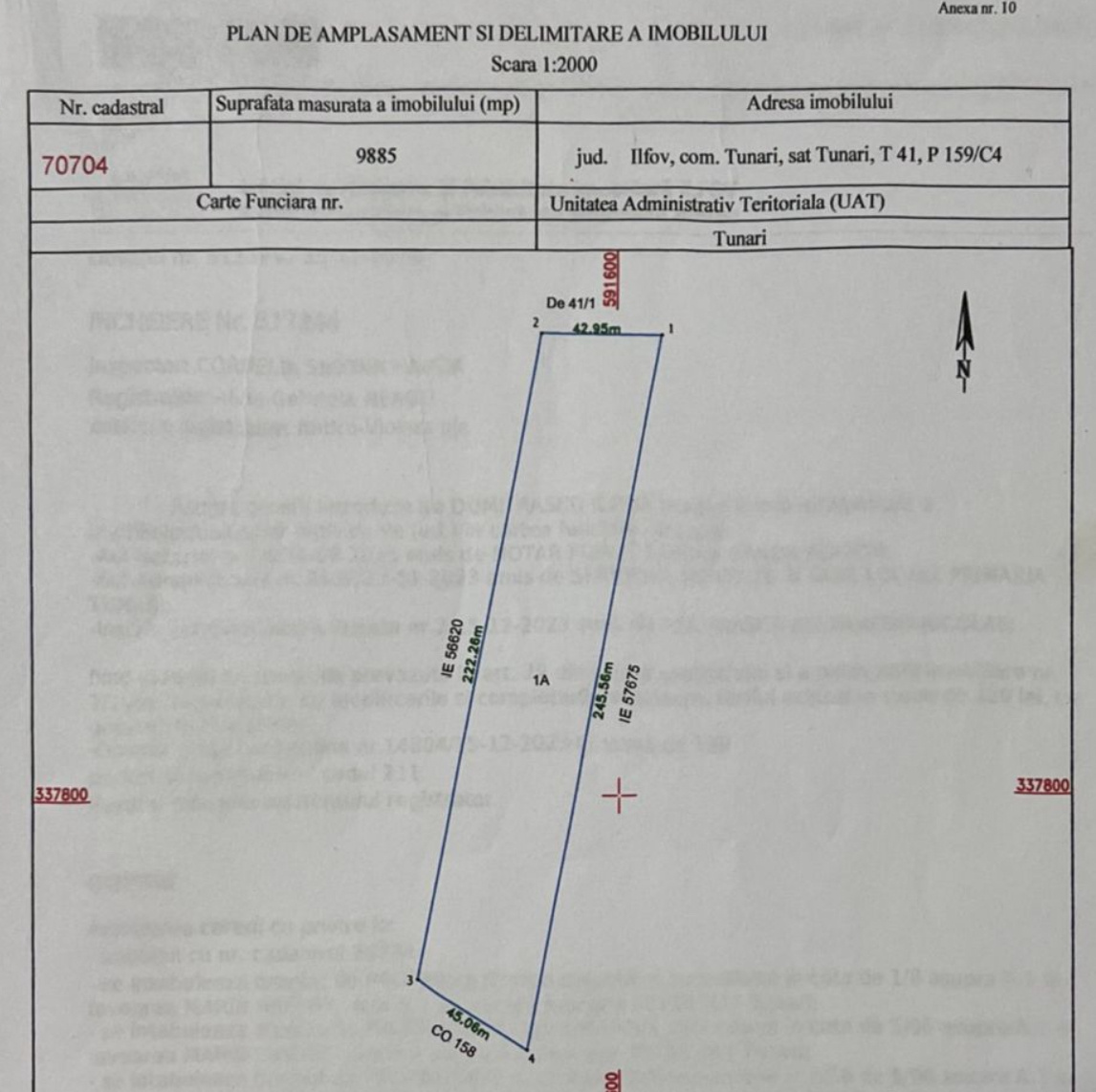 Vă propun spre vânzare un teren generos, cu suprafața de 9.885 mp, situat în Tunari, într-o zonă în plină dezvoltare, în imediata apropiere a Complexului AMC Kart – reper cunoscut și ușor accesibil.